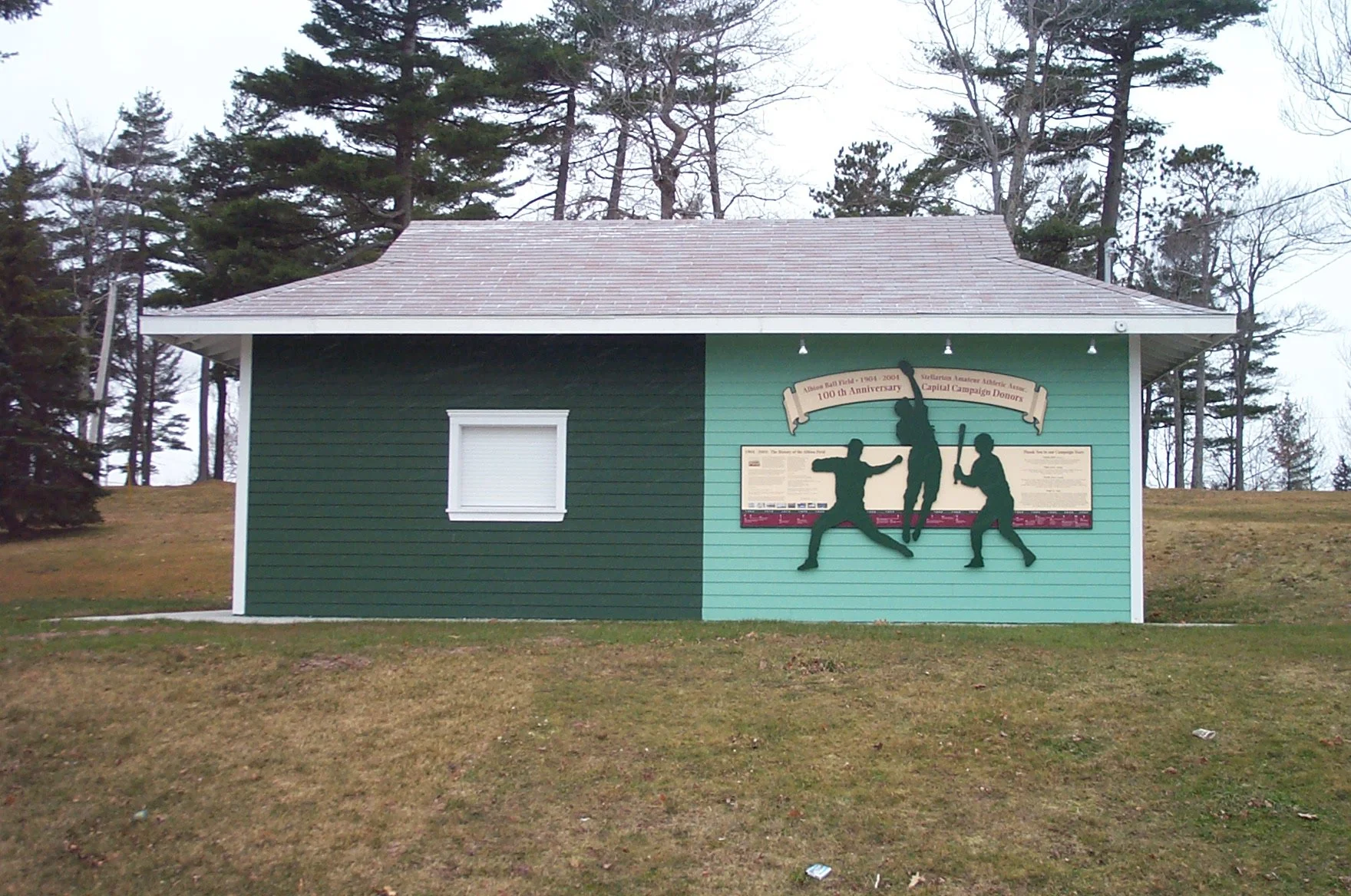 For Stellarton, Nova Scotia, baseball has been the local past time for generations. In 2004, the Albion Ball Field had its 100th anniversary. To commemorate the occasion, Atlantex produced a Donor wall that not only remembers the generous donors of the Albion Ball Field but also its long history as a mainstay for the town.