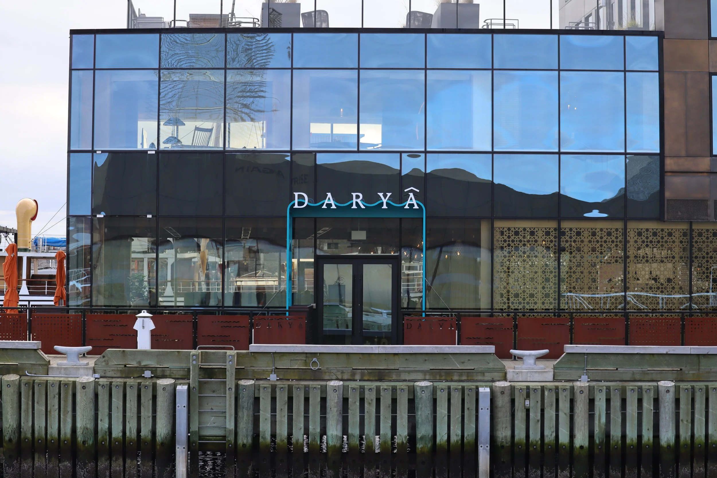 Eastern Mediterranean-inspired dining on the Halifax waterfront, Atlantex Creative Works fabricated a Mediterranean-inspired canopy with floating sign that captures the Eastern Mediterranean seaboard aesthetic and the waves of the Halifax waterfront.