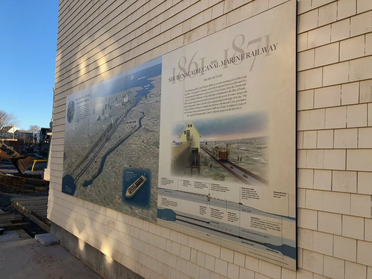 The final portion of the Shubenacadie Canal to be finished, the Dartmouth Marine Railway runs through the heart of Dartmouth and connects to the Shubenacadie Canal lock system. In 2018, Atlantex provided interpretive panels and signage for the replica flume house and cradle which sits on the former location of the famous Starr Manufacturing Company. Atlantex also fashioned a large scale replica gear system that sits inside the flume house.